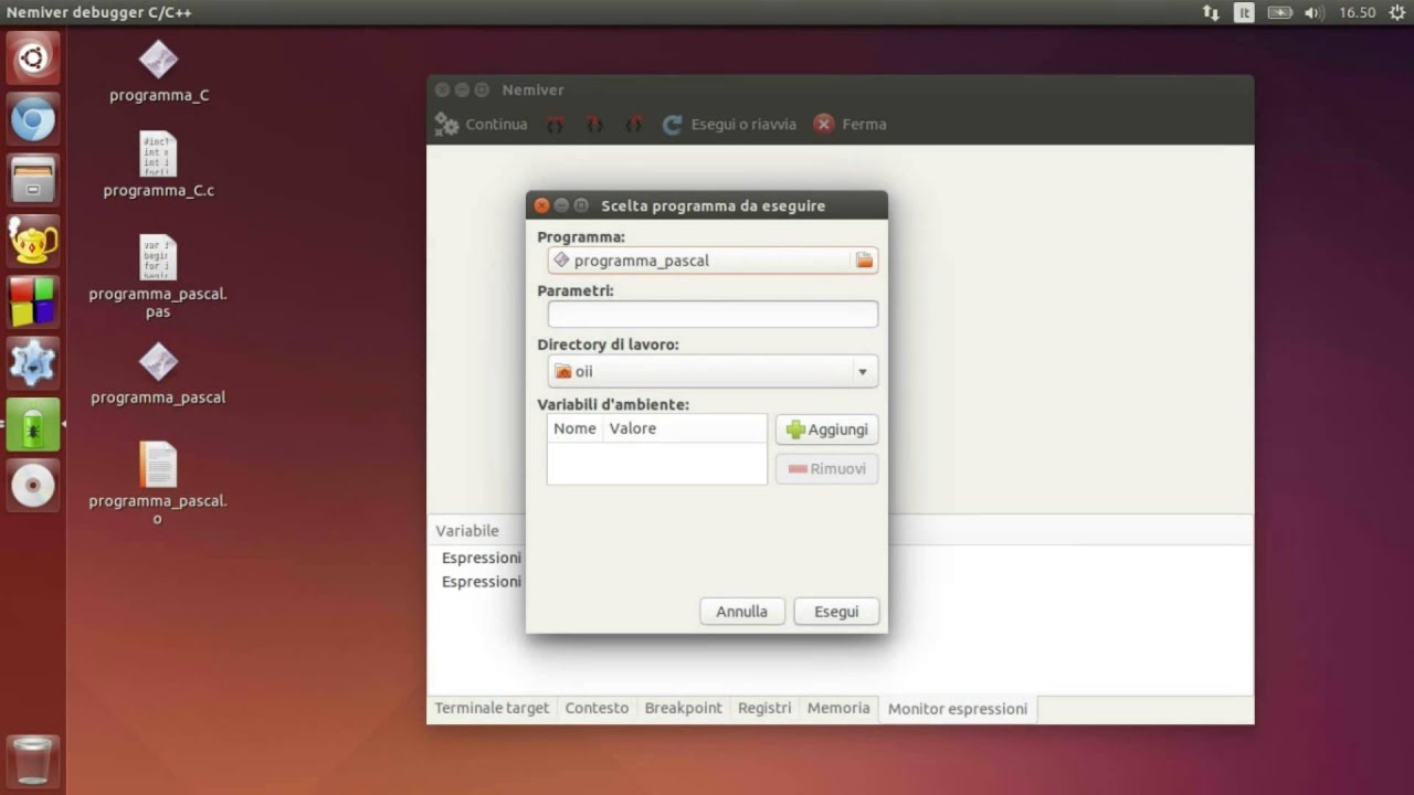 il secondo campo dovrebbe risultare vuoto, infatti F9 di default non fa nulla). A quel punto è necessario aggiungere il flag -g