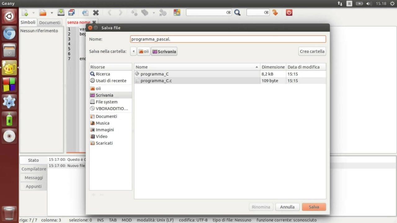 I seguenti tutorial richiedono che Geany sia configurato in un modo particolare, quindi non va bene lasciare la configurazione di default. (Ma ovviamente la VM avrà Geany già configurato nel modo giusto!)